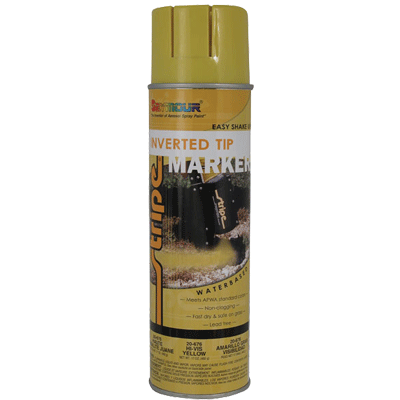 A fast-drying permanent marking paint applied in an inverted position. Ideal for utility, construction and survey markings on concrete, asphalt, gravel, grass or dirt. While it has a water-base formulation, it will not clog or wash away. Special over-cap allows fingertip control and guards against accidental use without removing the color coded cap.